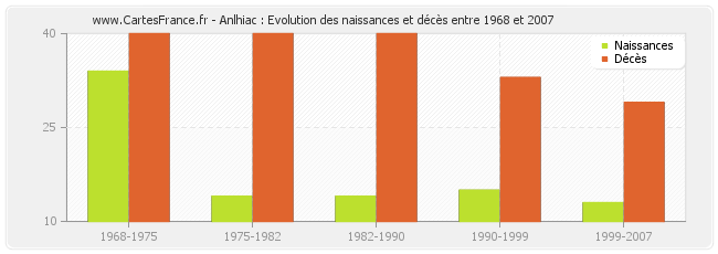Anlhiac : évolution des naissances et décès de 1968 à 2007
