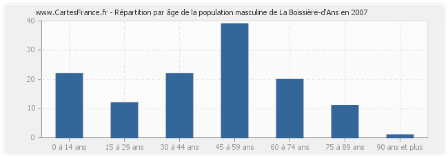 - Hommes de 45 à 59 ans habitant La Boissière-d'Ans : 39