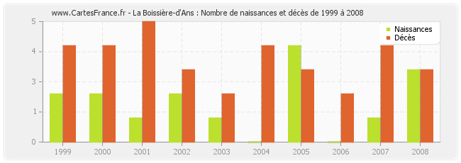 La Boissière-d'Ans : naissances et décès de 1999 à 2008