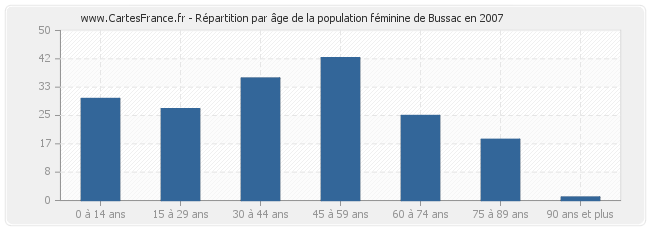- Femmes de 45 à 59 ans habitant Bussac : 42