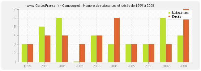 - Campsegret en 2008 : 4 naissances et 7 décès