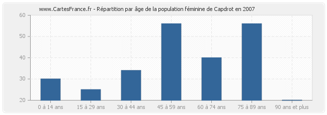 Répartition de la population féminine de Capdrot par âge en 2007 :