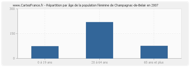 Répartition de la population féminine de Champagnac-de-Belair par âge en 2007 :