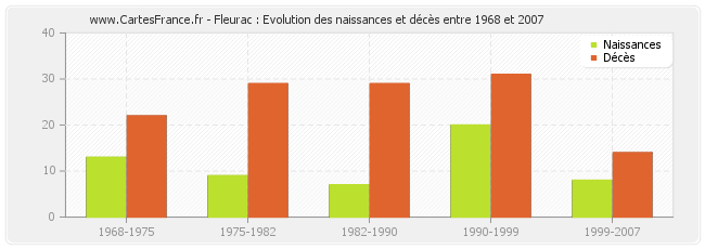 Fleurac : évolution des naissances et décès de 1968 à 2007