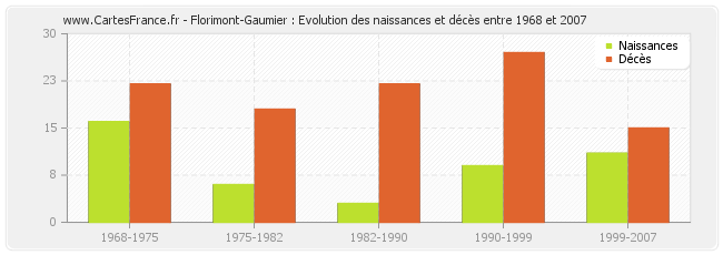 Florimont-Gaumier : évolution des naissances et décès de 1968 à 2007