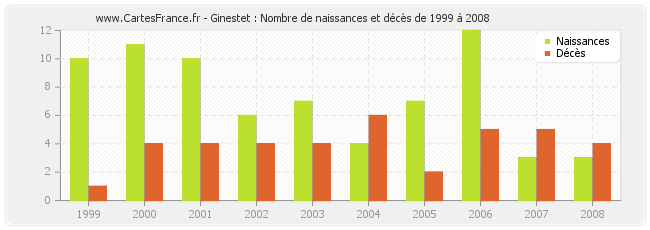- Ginestet en 2006 : 12 naissances et 5 décès