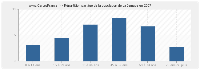 - Population de La Jemaye de 45 à 59 ans : 25 habitants