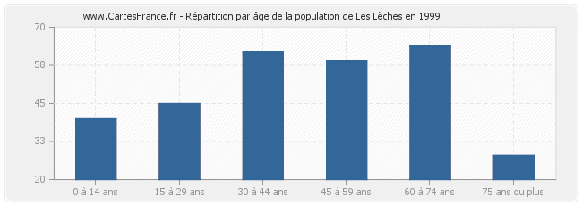 Répartition de la population de Les Lèches par âge en 1999 :