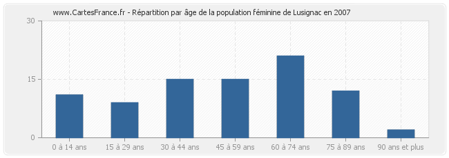 - Femmes de 60 à 74 ans habitant Lusignac : 21