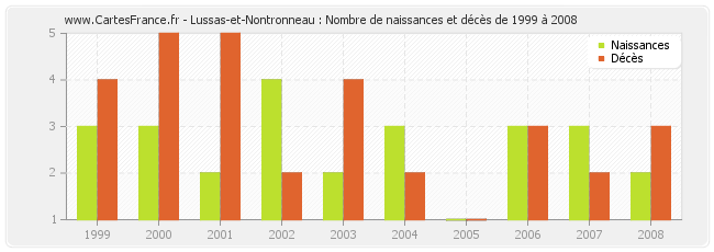 Lussas-et-Nontronneau : naissances et décès de 1999 à 2008