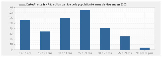 - Femmes de 45 à 59 ans habitant Maurens : 131