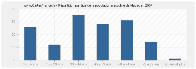Répartition de la population masculine de Mayac par âge en 2007 :