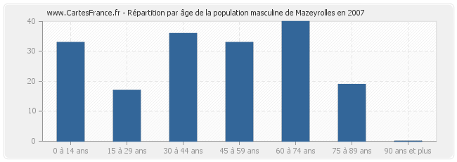 Répartition de la population masculine de Mazeyrolles par âge en 2007 :