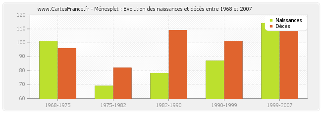 Ménesplet : évolution des naissances et décès de 1968 à 2007