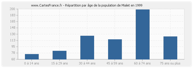 - Population de Mialet de 60 à 74 ans : 198 habitants