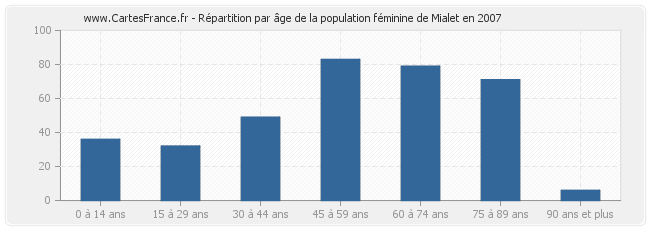 Répartition de la population féminine de Mialet par âge en 2007 :