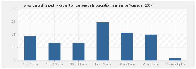 - Femmes de 45 à 59 ans habitant Monsec : 22