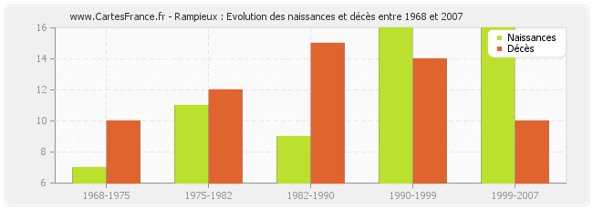 Rampieux : évolution des naissances et décès de 1968 à 2007