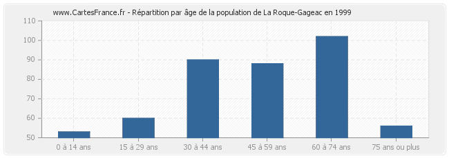 - Population de La Roque-Gageac de 60 à 74 ans : 102 habitants