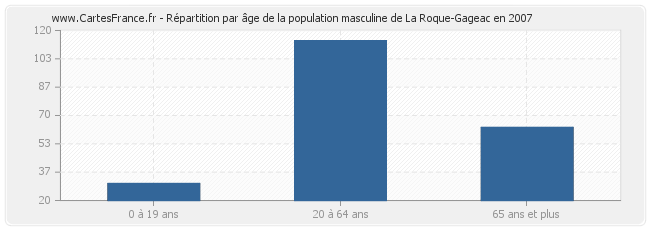 - Hommes de 20 à 64 ans habitant La Roque-Gageac : 114