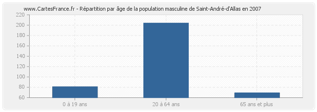 Répartition de la population masculine de Saint-André-d'Allas par âge en 2007 :