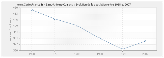 - Population de Saint-Antoine-Cumond en 2007 : 386 habitants