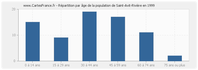 - Population de Saint-Avit-Rivière de 30 à 44 ans : 19 habitants