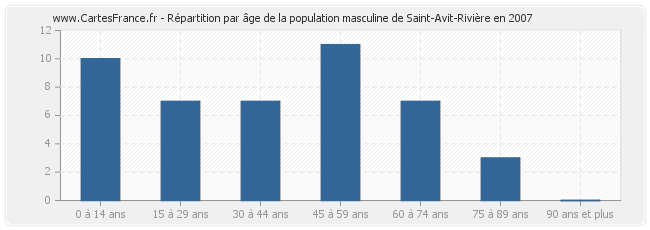 Répartition de la population masculine de Saint-Avit-Rivière par âge en 2007 :