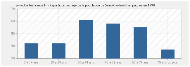 - Population de Saint-Cyr-les-Champagnes de 30 à 44 ans : 61 habitants