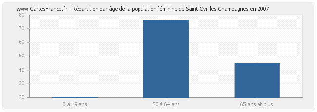 Répartition de la population féminine de Saint-Cyr-les-Champagnes par âge en 2007 :