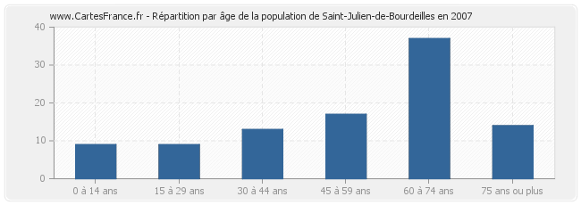 - Population de Saint-Julien-de-Bourdeilles de 60 à 74 ans : 37 habitants