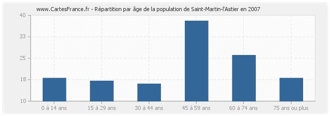 - Population de Saint-Martin-l'Astier de 45 à 59 ans : 38 habitants