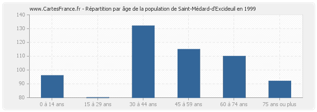 - Population de Saint-Médard-d'Excideuil de 75 ans ou plus : 96 habitants