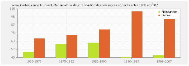 Saint-Médard-d'Excideuil : évolution des naissances et décès de 1968 à 2007
