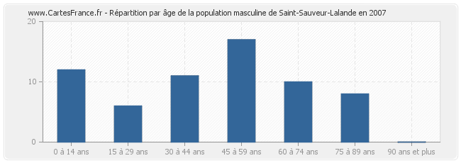 - Hommes de 45 à 59 ans habitant Saint-Sauveur-Lalande : 17