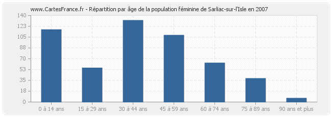 Répartition de la population féminine de Sarliac-sur-l'Isle par âge en 2007 :