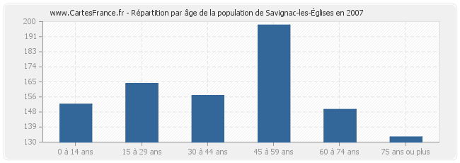 - Population de Savignac-les-Églises de 45 à 59 ans : 198 habitants