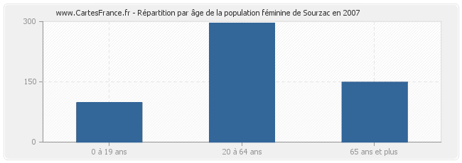 Répartition de la population féminine de Sourzac par âge en 2007 :