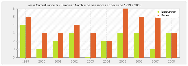 - Tamniès en 2008 : 3 naissances et 3 décès