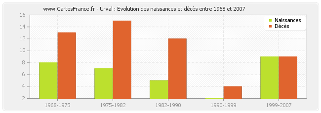 La population d'Urval était de 152 habitants en 2007, 163 habitants en 1999, 123 habitants en 1990, 121 habitants en 1982, 109 habitants en 1975 et 159 habitants en 1968.