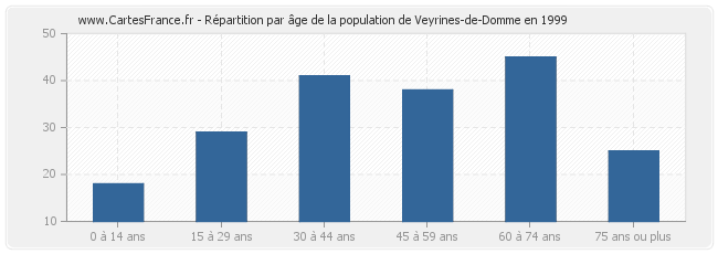 - Population de Veyrines-de-Domme de 60 à 74 ans : 45 habitants