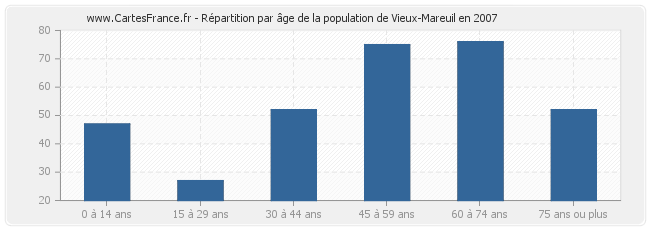 - Population de Vieux-Mareuil de 75 ans ou plus : 52 habitants