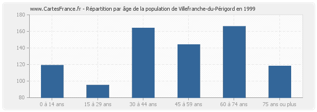 - Population de Villefranche-du-Périgord de 60 à 74 ans : 166 habitants