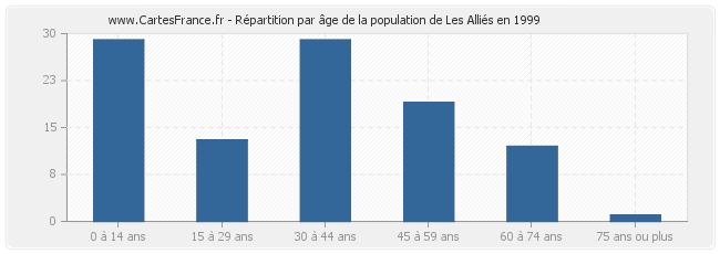 - Population de Les Alliés de 0 à 14 ans : 29 habitants