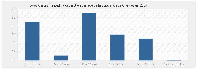 - Population de Chevroz de 30 à 44 ans : 23 habitants