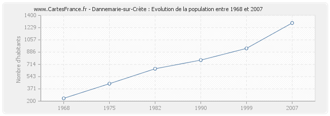 La population de Dannemarie-sur-Crète était de 1 294 habitants en 2007, 938 habitants en 1999, 774 habitants en 1990, 653 habitants en 1982, 444 habitants en 1975 et 239 habitants en 1968.
