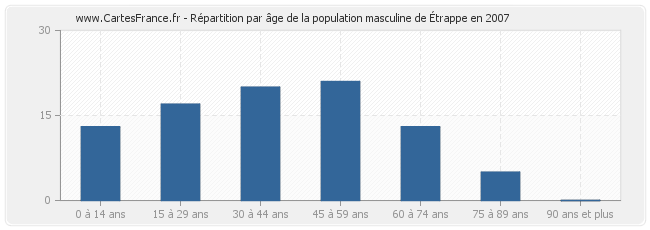 - Hommes de 45 à 59 ans habitant Étrappe : 21