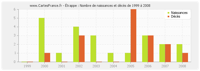 - Étrappe en 2005 : 1 naissances et 6 décès