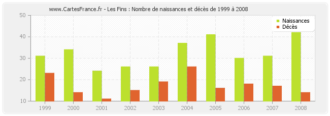 - Les Fins en 2008 : 42 naissances et 14 décès