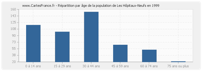 - Population de Les Hôpitaux-Neufs de 30 à 44 ans : 153 habitants